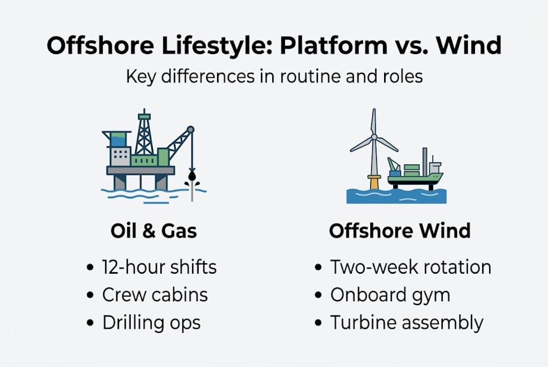 Here is how an oil and gas rotation compares to an offshore wind role: