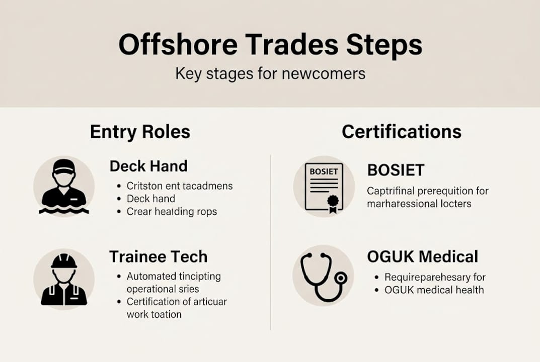 Entry-level roles do exist for candidates new to the sector, but you must still hold approved safety certifications and a valid offshore medical before any operator can deploy you to an installation.